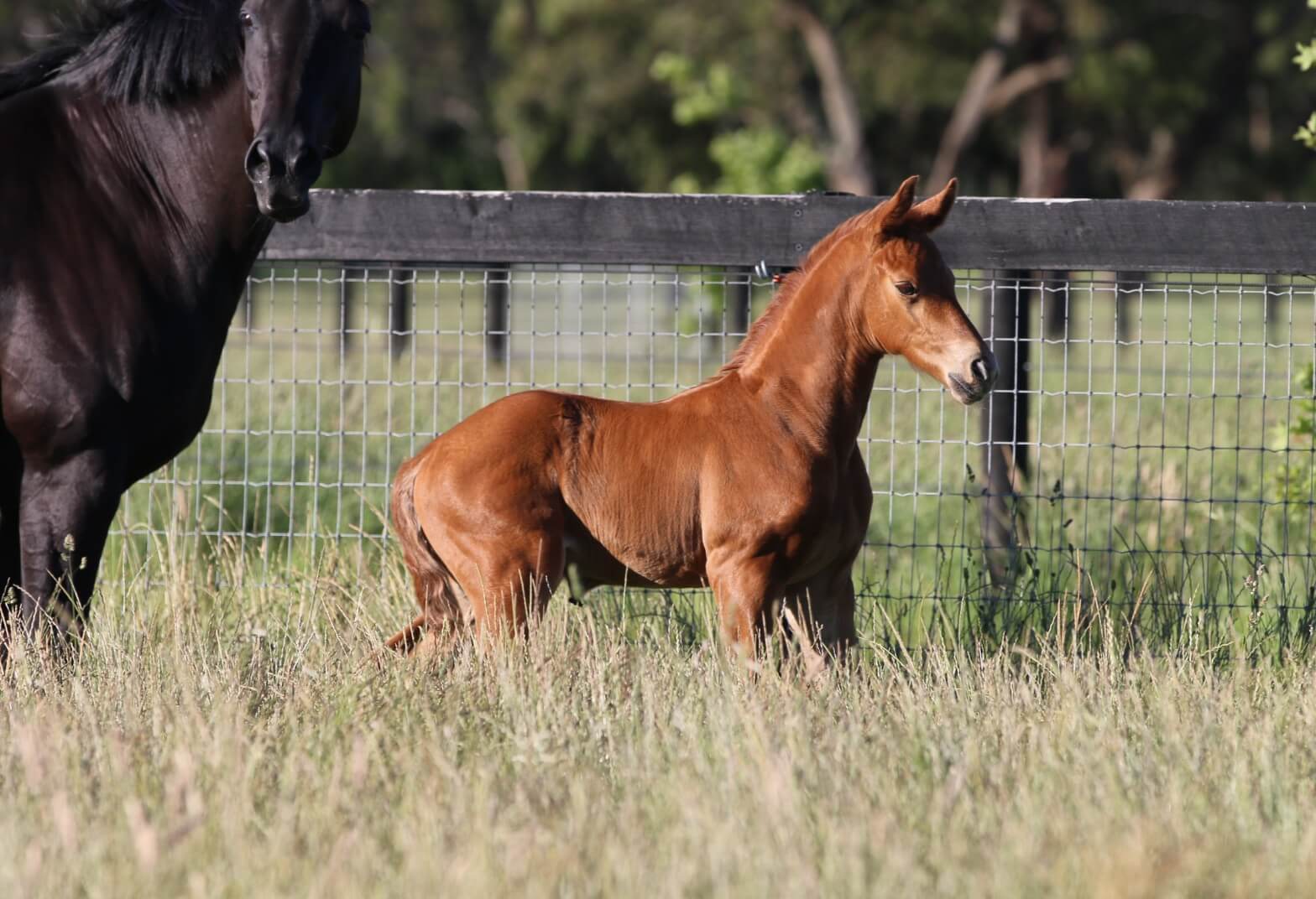 An exceptional, leggy chestnut colt by Asgard’s Ibiza out of our beautiful imported Hochadel mare High Colour. This colt is bred for high level dressage. Although not common in Australia due to a lack of semen availability, the Hochadel (Hohenstein) lines are becoming more prevalent in high performing dressage horses in Europe. Stallions like Iron combine the lines of Ibiza, Hohenstein and Weltmeyer, all here in this colt’s pedigree. He is available to a dressage-focused home.